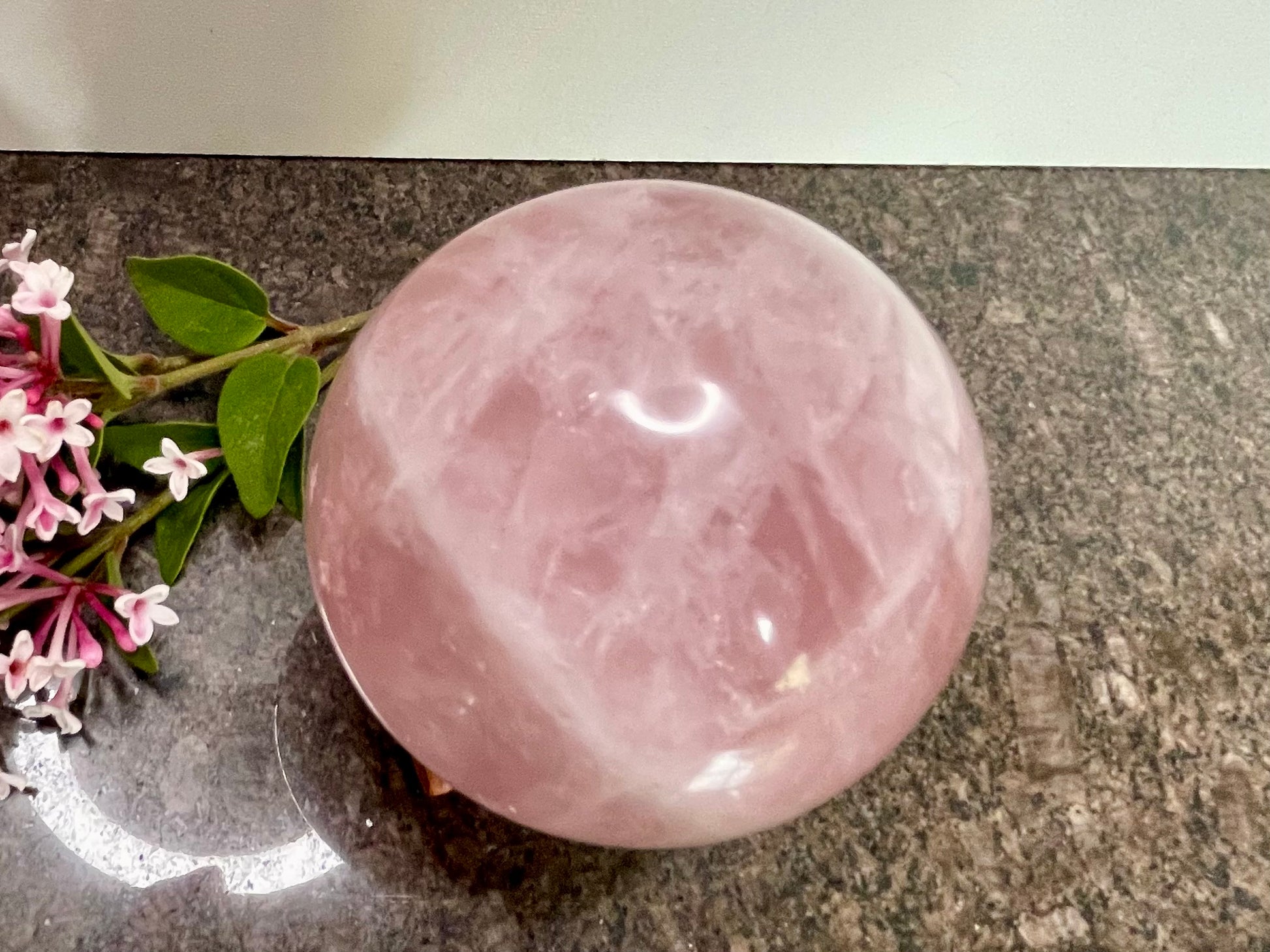 Large Rose Quartz Crystal Sphere - spiritual healing crystal