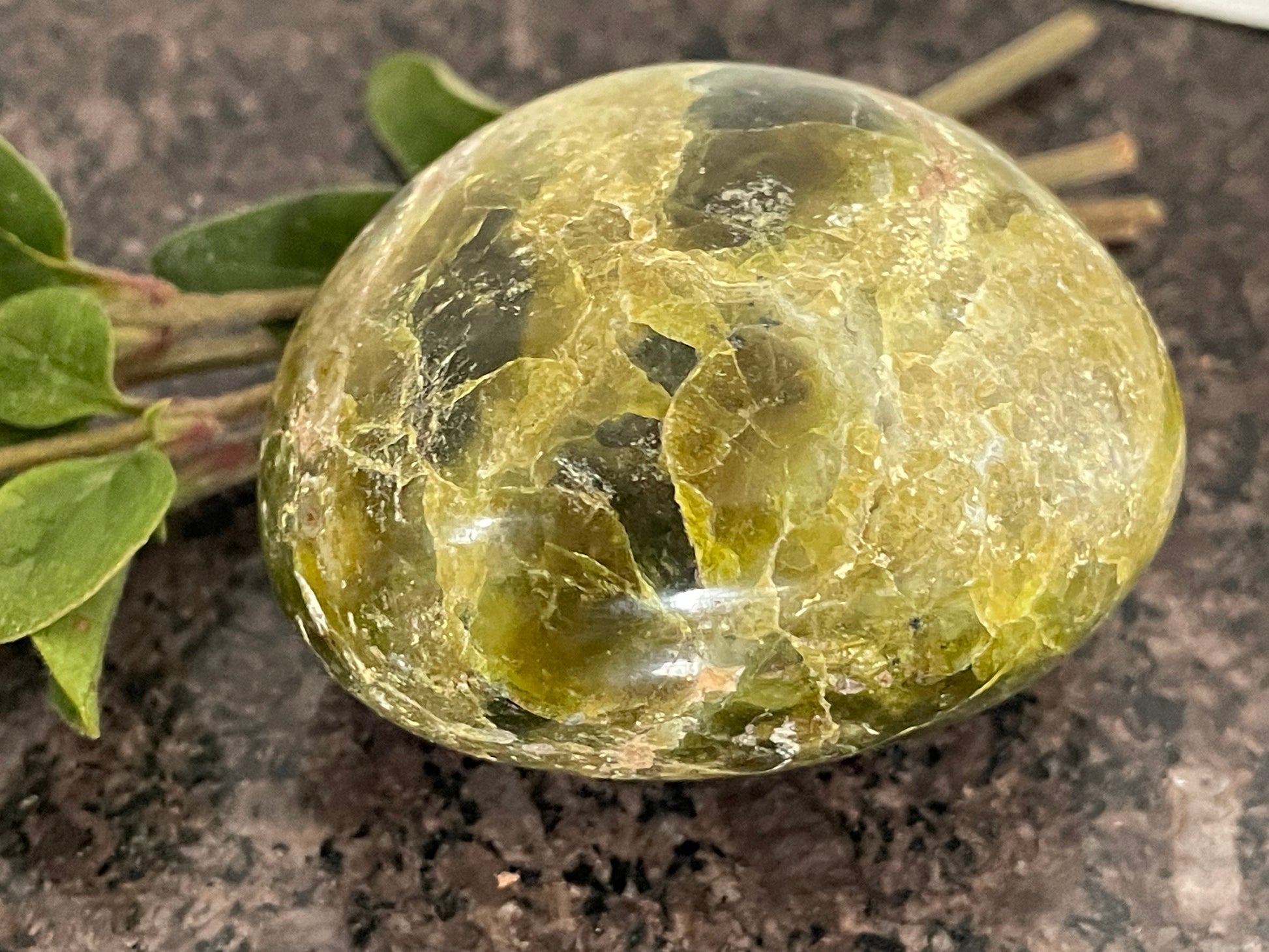 This exquisite Green Opal palm crystal, measuring 7.5 cm, features a refined, smooth surface perfect for elegant handling. Its rich green tones evoke tranquillity and balance, making it a sophisticated choice for crystal collectors and healers seeking a graceful tool to enhance emotional harmony and mindful reflection.
