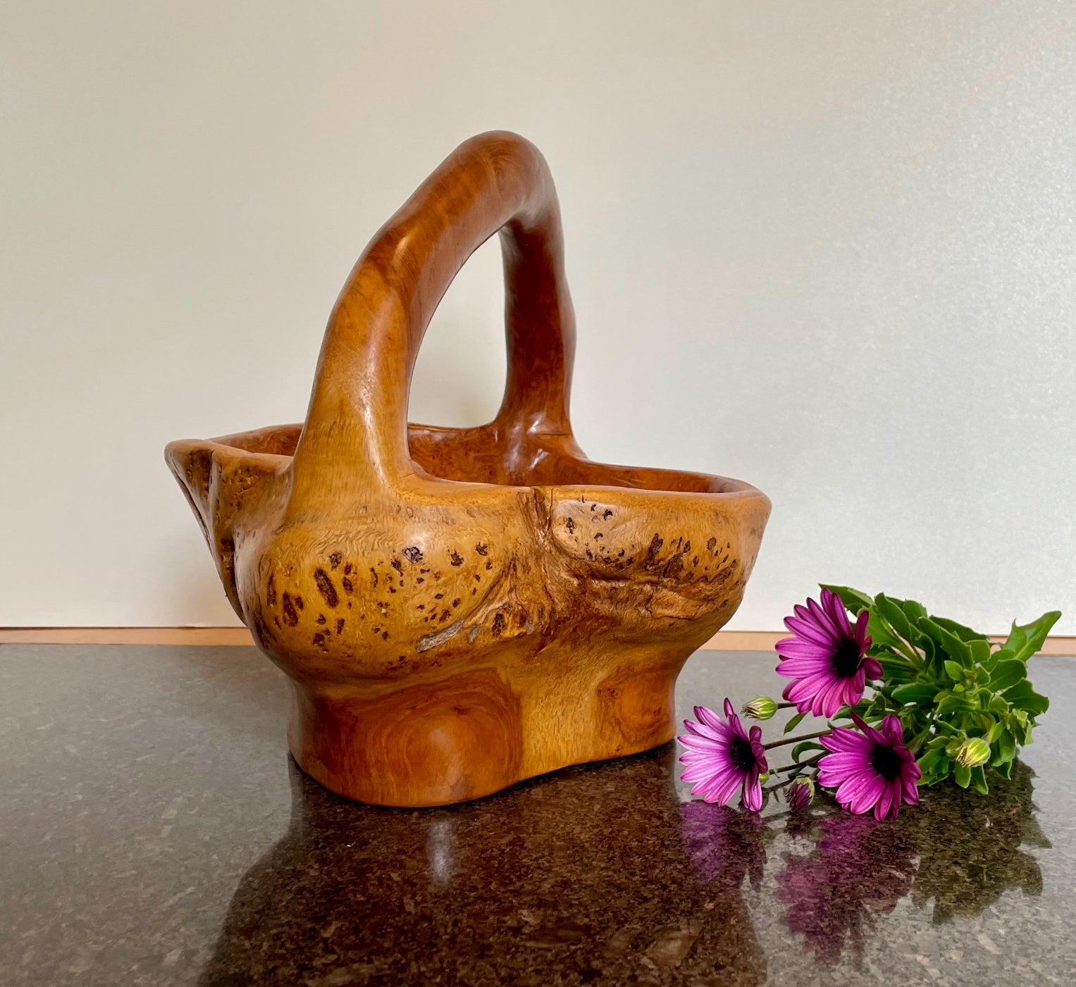 Artisan Solid Wood Decorative Bowl / Basket with handle