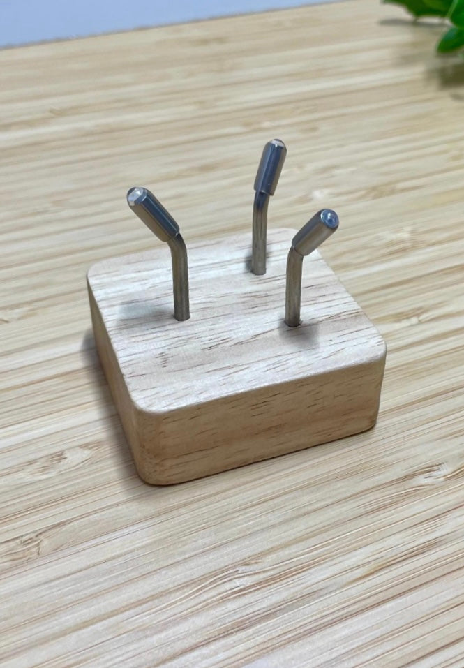 With its wooden base and metal claws, this practical sphere holder will display your crystals elegantly.